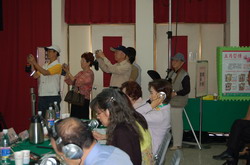 早上長青組原定8:30報到,不過最早拔得頭香的報到者可是7:40就已經摩拳擦掌抵達會場囉!而且出席率超高,可見大家對比賽的勢在必得。比賽會場舞台呈現的是熱鬧活潑的色調;主持人宗慶和紫伶盡心準備,全力演出,現場氣氛掌握得流暢得宜;參賽者個個台風穩健依序上台,賣力演唱且精心造型;台下的評審老師帶著耳機用心聆聽客觀評分,希望在聽見歌藝外,看出更多參賽者的實力。