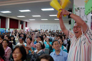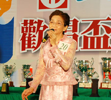 衡陽路金合成銀樓的老板娘何秀足,這次參加的是長青組,但駐顏有術的她,上台時令人難以相信她的年齡,引起一陣小騷動。陪同加油的老闆許正宗看起來比太太還緊張。許老闆很支持太太學唱歌,他表示正聲辦歌唱比賽,可以帶動歌唱文化,在台北市發揮敦親睦鄰的功效,讓退休人士有目標可以努力,實在是很不錯! |
