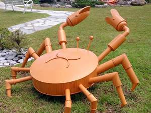 另外,螃蟹公園內的湖景與人行步道是葫蘆形狀,以「懸壺濟世」、「葫蘆收妖」激勵員工努力為全民抗癌。