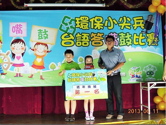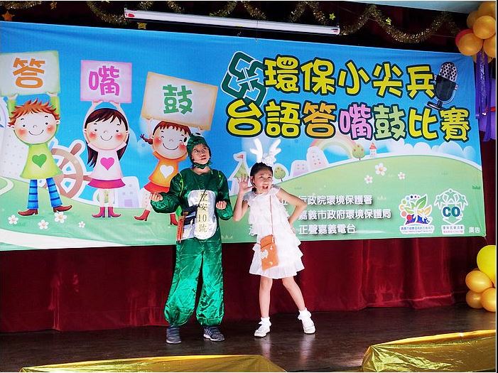 <環保小尖兵-台語答嘴鼓比賽>由嘉義市政府環保局主辦,正聲嘉義電台承辦。結合當前環保議題作為答嘴鼓比賽創作題材,讓孩子了解鄉土語言文化之美,也加深孩子對環境保護議題的重視。此次活動,可說是獲得嘉義市各國小的熱烈參與,因為有好幾個學校,紛紛派出3到4組學校的精英隊伍參賽,其中世賢國小更是推派了7支隊伍,高居此次活動之冠。由於嘉義台辦理台語答嘴鼓比賽已有十分豐富的經驗,學校參與情形的踴躍,正可說明嘉義台在活動的辦理上深獲學校好評。