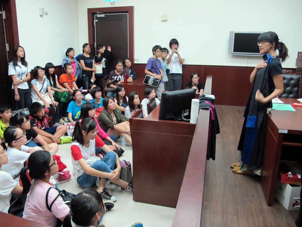 其中偵查庭狀況劇是由參加的高中生以Cosplay方式,分別穿上法袍,扮演法官、檢察官、律師,實際體會司法人員如何問案、辦案等相關流程。