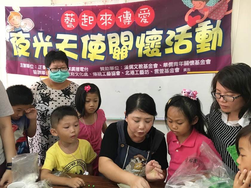 耳邊伴隨著小朋友的聲音:「老師,我也想做豆豆龍的紙粘土相框,當成自己暑假的作業。」雲林台為了讓夜光天使班的孩童與縣內身心障礙的朋友能學習傳統工藝的機會,在漢儒文教基金會、華儒青年關懷基金會贊助及雲林縣政府文化處協辦下,結合傳統工藝協會、北港工藝坊及雲萱基金會,提供特殊境遇的孩童與家長特別的學習機會!