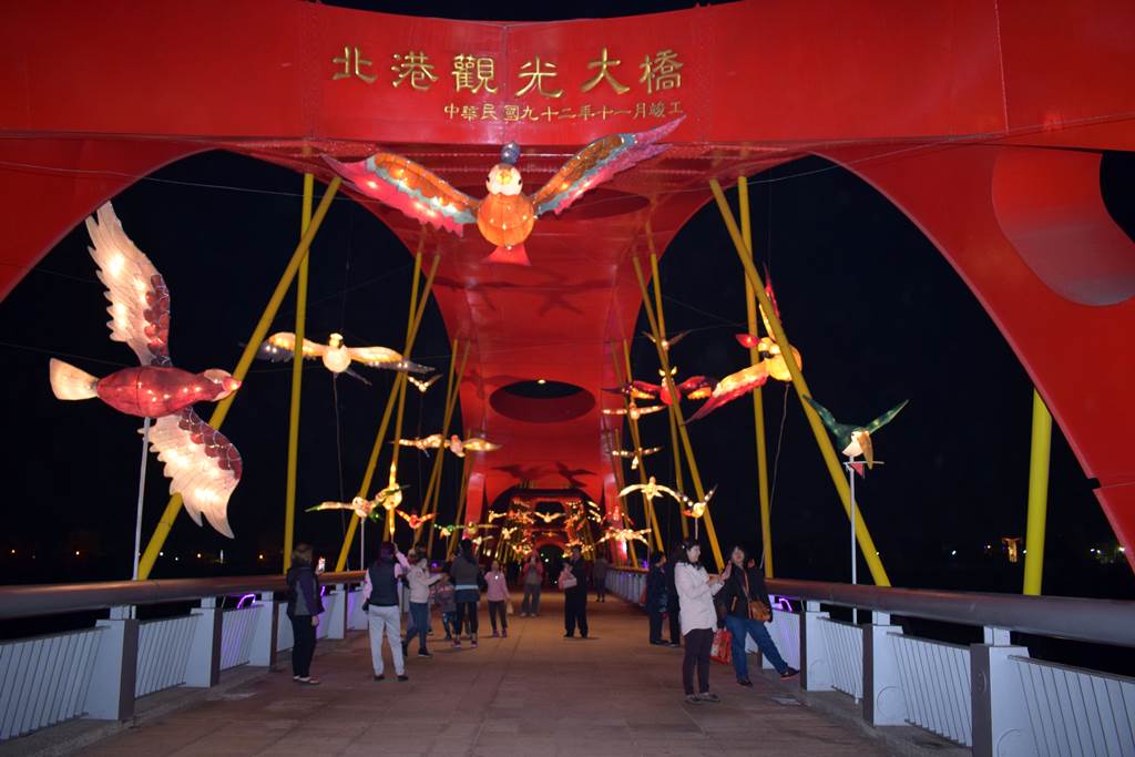觀光大橋燈區以橫跨雲林、嘉義的北港觀光大橋為主體,以「百鳥朝鳳」為主題,在大橋上設置了近百組飛鳥傳統花燈,每組皆由北港燈藝師精心製作,象徵北港匯集各路神明、信眾來此地朝聖媽祖的壯闊景象。