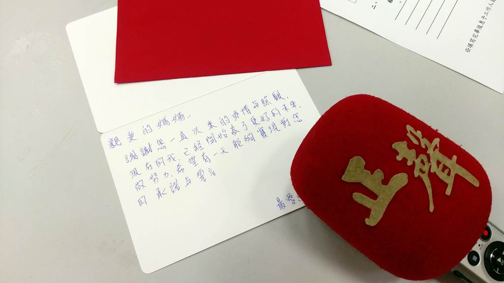 一張卡片,寫下對媽媽的感恩。更生保護會嘉義分會在母親節前夕,安排更生朋友透過自己的筆,寫下心中對母親,對家人的感謝話語,藉此修補曾經遺憾的親情。更保嘉義分會主任委員黃俊森表示,親情的支持是最好的良藥,也期盼更生朋友能深切體認家人對自己的愛,砥礪自己堅定意志努力向前。