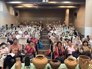 而下午場次的潘三妹老師首先以賽夏族的姓氏由來,跟大家說明其賽夏族的文化,另外有鑑於原住民口述文化很難保留,三妹老師也認為「保存賽夏文化,絕對要從小培養」,除了協助學校學生的賽夏族文化傳習工作、致力於推廣竹籐編織外,對於賽夏族的傳統技藝、戲劇、舞蹈、音樂及語言等無不盡心盡力、不計回報地付出與指導。因此,不管是公家單位、學校機關或學校團體,只要有機會,三妹老師不計代價,全面配合協助,只求該活動能傳承、保留賽夏族文化。在孩子的文化傳習指導中教學相長,不斷地研究、精進,三妹老師將最能代表賽夏族之文化精髓,因此潘老師帶著媳婦與兩位孫女當助手一起前來講堂,教導大家竹編的藝術,課程最後,每位學員拿著自己的手作竹編隔熱墊,都直呼真的很有趣,尤其是大部分學員第一次接觸竹藤編,上完文資講堂的講座後,覺得賽夏族的竹藤編藝多元豐富,值得細細品味與保存。