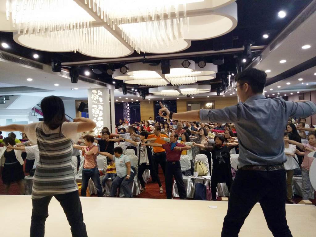 陳穎峰教授以風趣的演說方式傳授大家正確的投資觀念,教導現場中壯年及銀髮族如何穩健投資保住老本;陳冠佐醫師則告訴大家如何透過運動預防及延緩肌少症,並現場教導大家強化肌力的養生八段錦。
